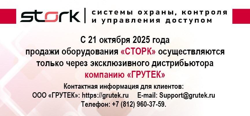 Компания ООО «ГРУТЕК» сообщает о заключении стратегического партнерства с производителем систем безопасности ООО «Сторк». С 21 октября 2025 года мы становимся эксклюзивным дистрибьютором всего спектра оборудования и программного обеспечения систем контроля и управления доступом (СКУД) производства ООО «Сторк» на территории России и стран СНГ.